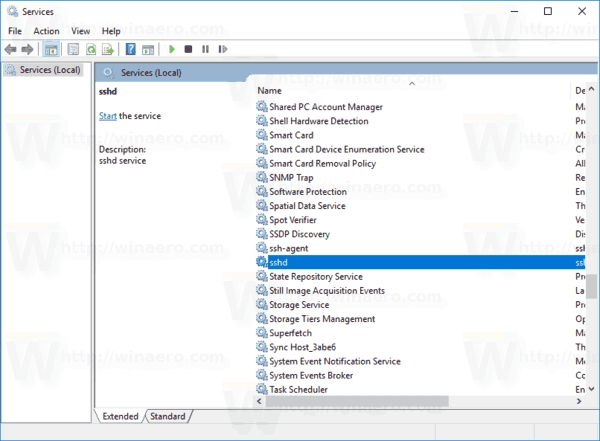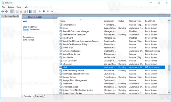 Finally, open Services (Press the Win + R keys and type services.msc in the Run box) and start the sshd service. It should start: