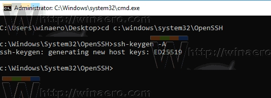 ssh-keygen -Ato generate security keys for the sshd server.Now, in the elevated command prompt, type