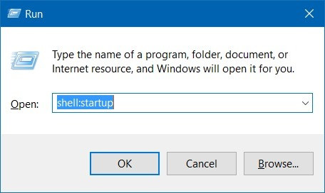 Trên cửa sổ lệnh Run, nhập shell:startup vào đó rồi nhấn Enter để mở thư mục Startup.