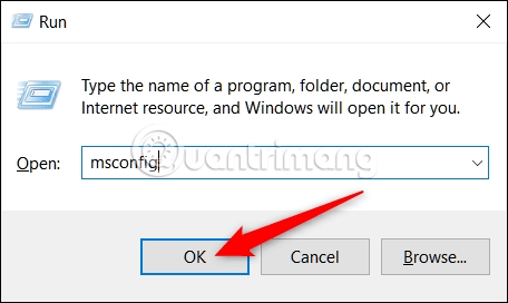 Nhấn Windows + R để mở cửa sổ Run > nhập msconfig vào và nhấn Enter.