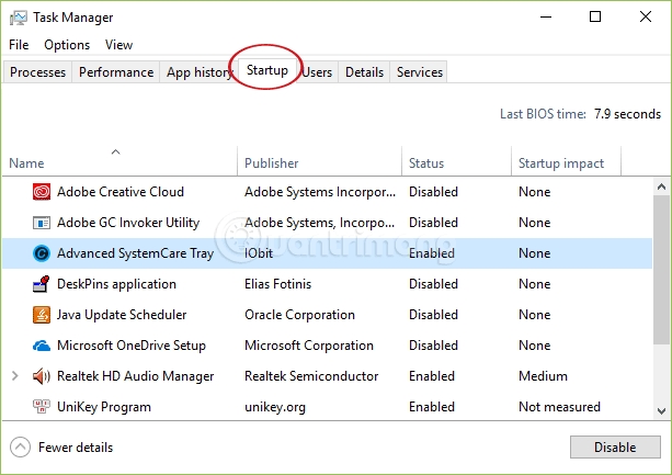 Tắt các chương trình khởi động cùng hệ thống trên Windows 10